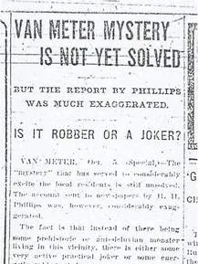 - 6 photos: Van Meter’s visitor – a “winged creature” reportedly seen in 1903. (online article).